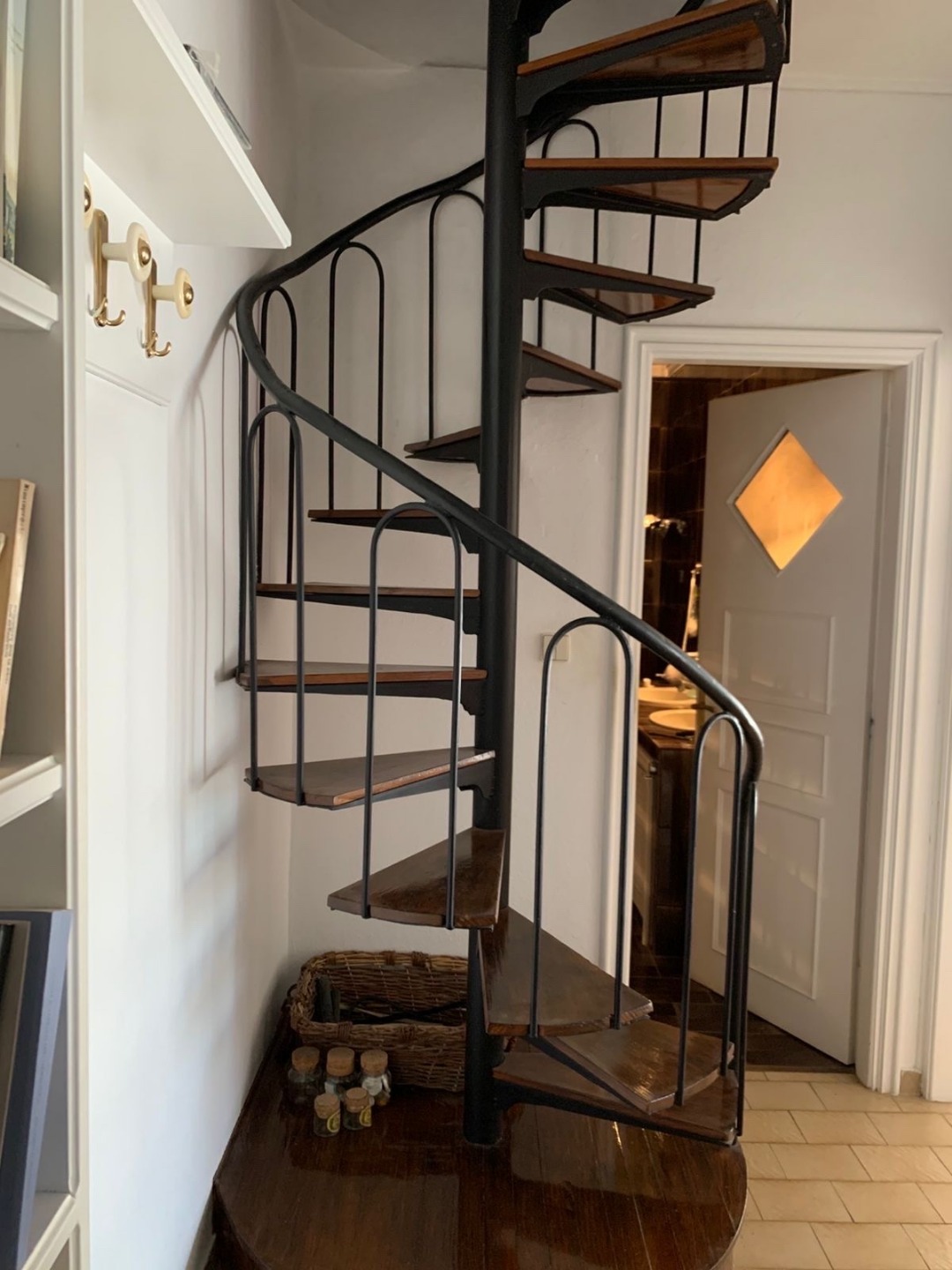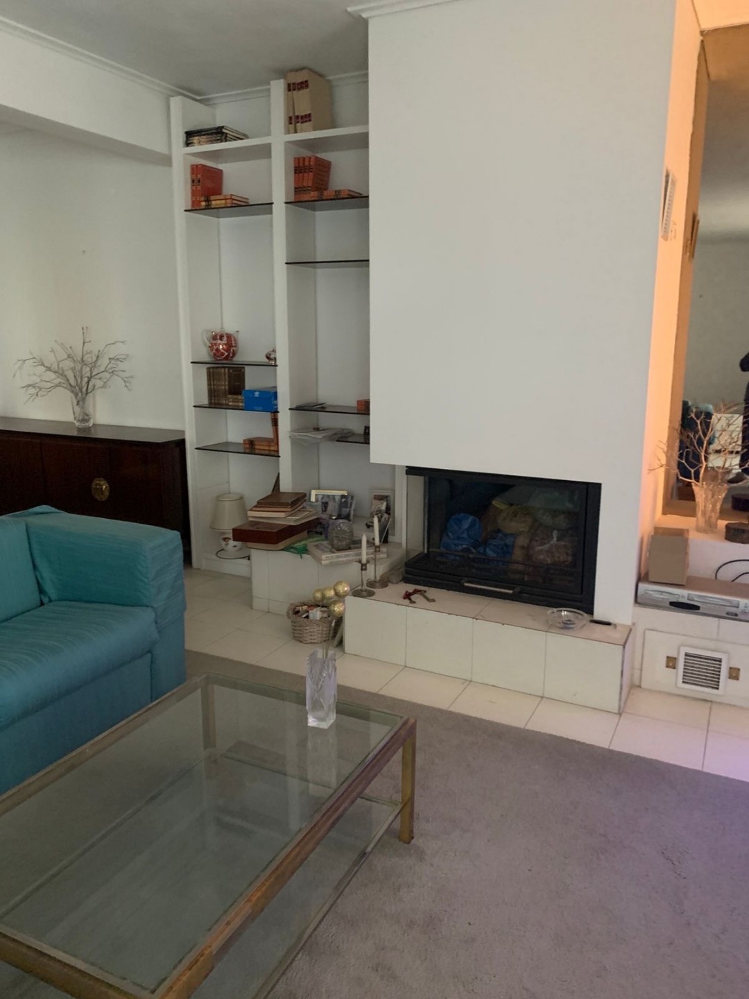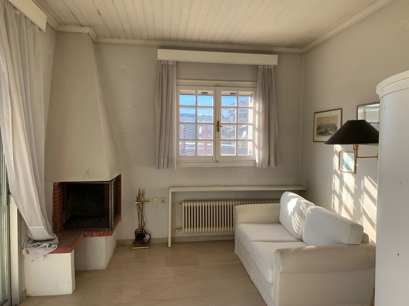 Μια εσωτερική σκάλα οδηγεί στον 5 ο όροφο σε ενιαίο χώρο καθιστικού με τζάκι,