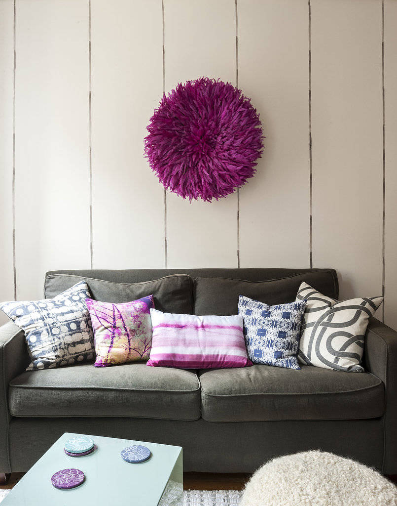Οι... εκπλήξεις, όπως αυτά τα μοβ διακοσμητικά στο διαμέρισμα των φωτογραφιών κάνουν ένα χώρο πιο ζεστό. Και πιο ενδιαφέρον, παιχνιδιάρικο, ζεστό.